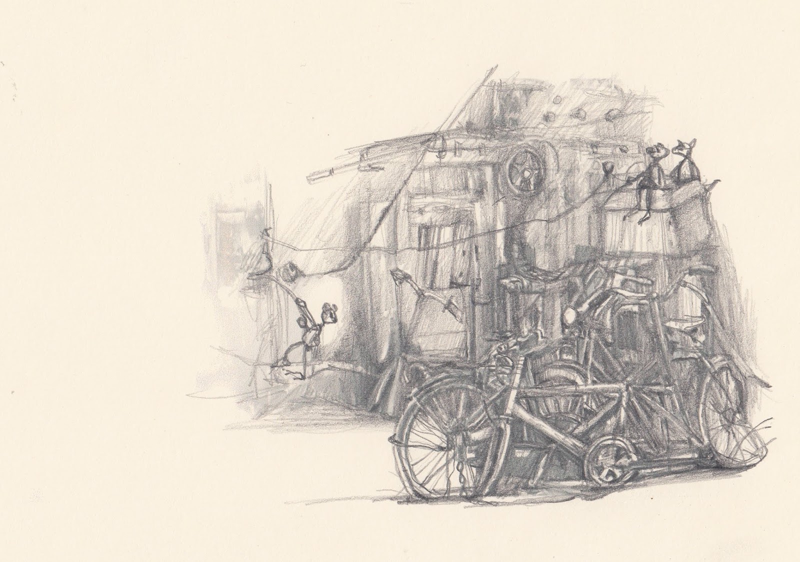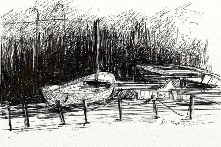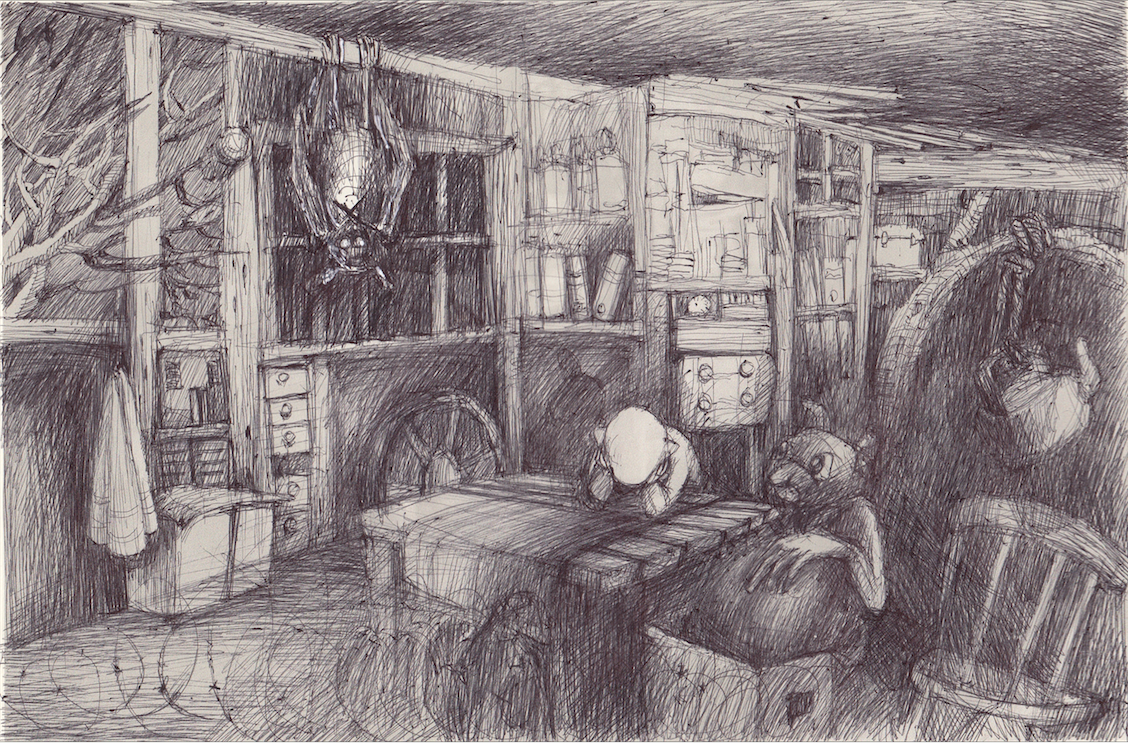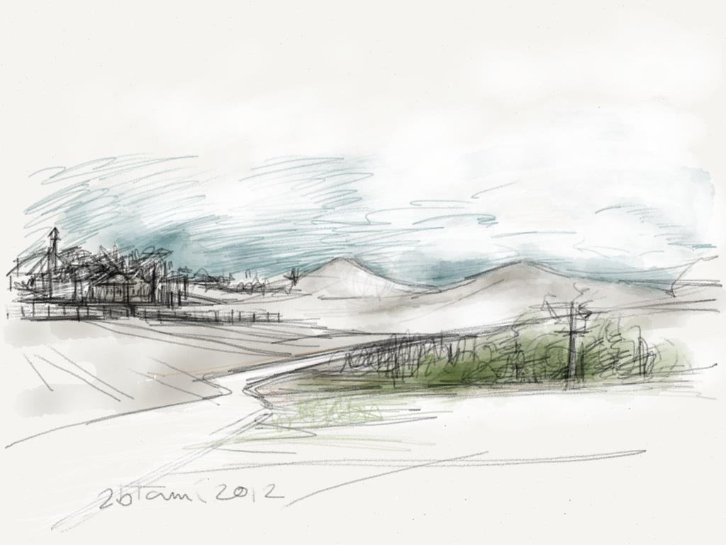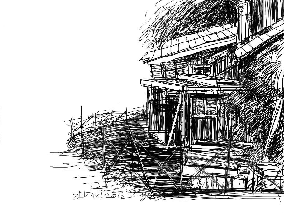 הרישום על האייפד, בגלל אמצעיו המוגבלים (ציור אצבע, בשלב ההוא), הסתיים מהר יחסית, ואולי בגלל זה תמיד היה בתוכו משהו טרי יותר ורענן יותר מרישומי העט-על-ניר הרגילים שלי שמשכו אותי ליותר ויותר חפירה, ונראו אפלים, למשל כמו פה: